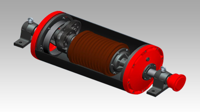 TDY型油冷式電滾筒是我國(guó)目前廣泛采用的普通型電滾筒。滾筒電機(jī)由專(zhuān)業(yè)的電滾筒電機(jī)廠配套,其性能指標(biāo)不低于同等功率的我國(guó)Y系列電機(jī)的指標(biāo)。該系列滾筒齒輪采用表面磨齒處理,具有結(jié)構(gòu)緊湊,運(yùn)行平穩(wěn),噪音低 ,安裝方便等優(yōu)點(diǎn)。廣泛應(yīng)用于礦山、港口、熱電、冶金、建材、混凝土等各部門(mén)的中小型帶式輸送機(jī)。